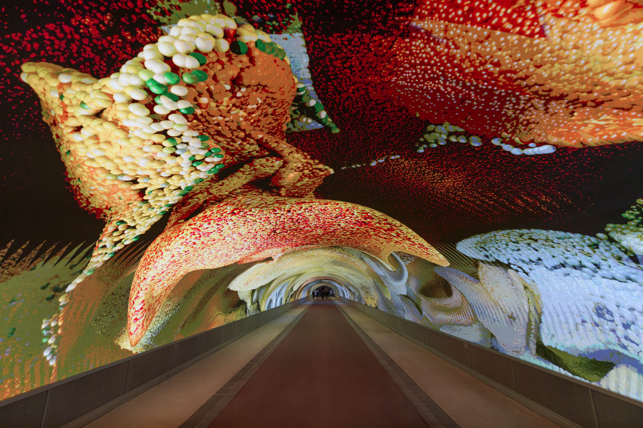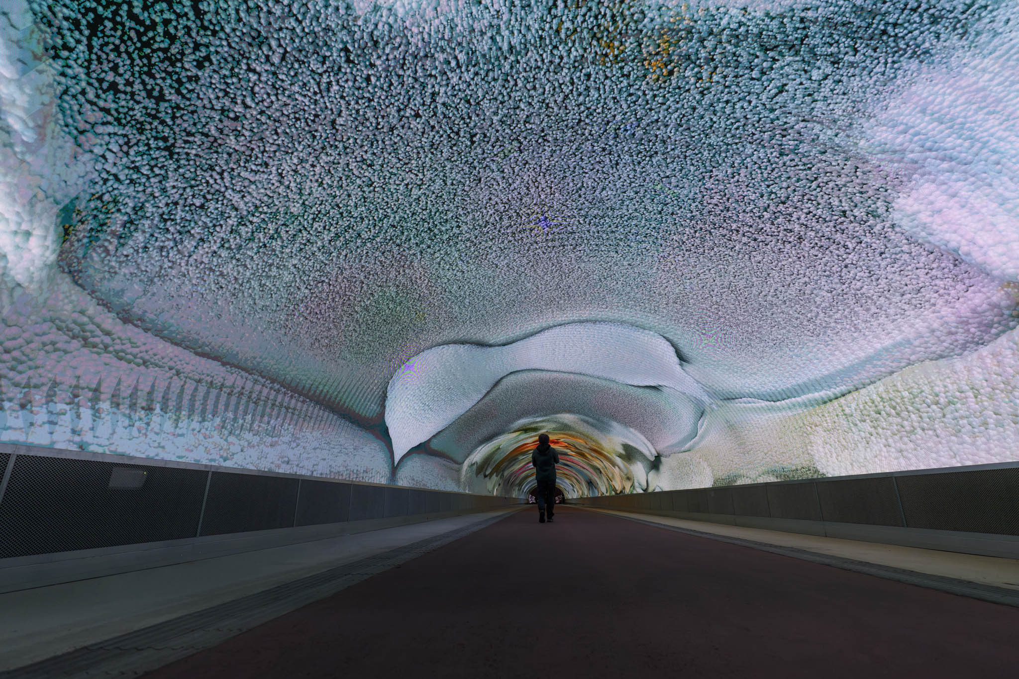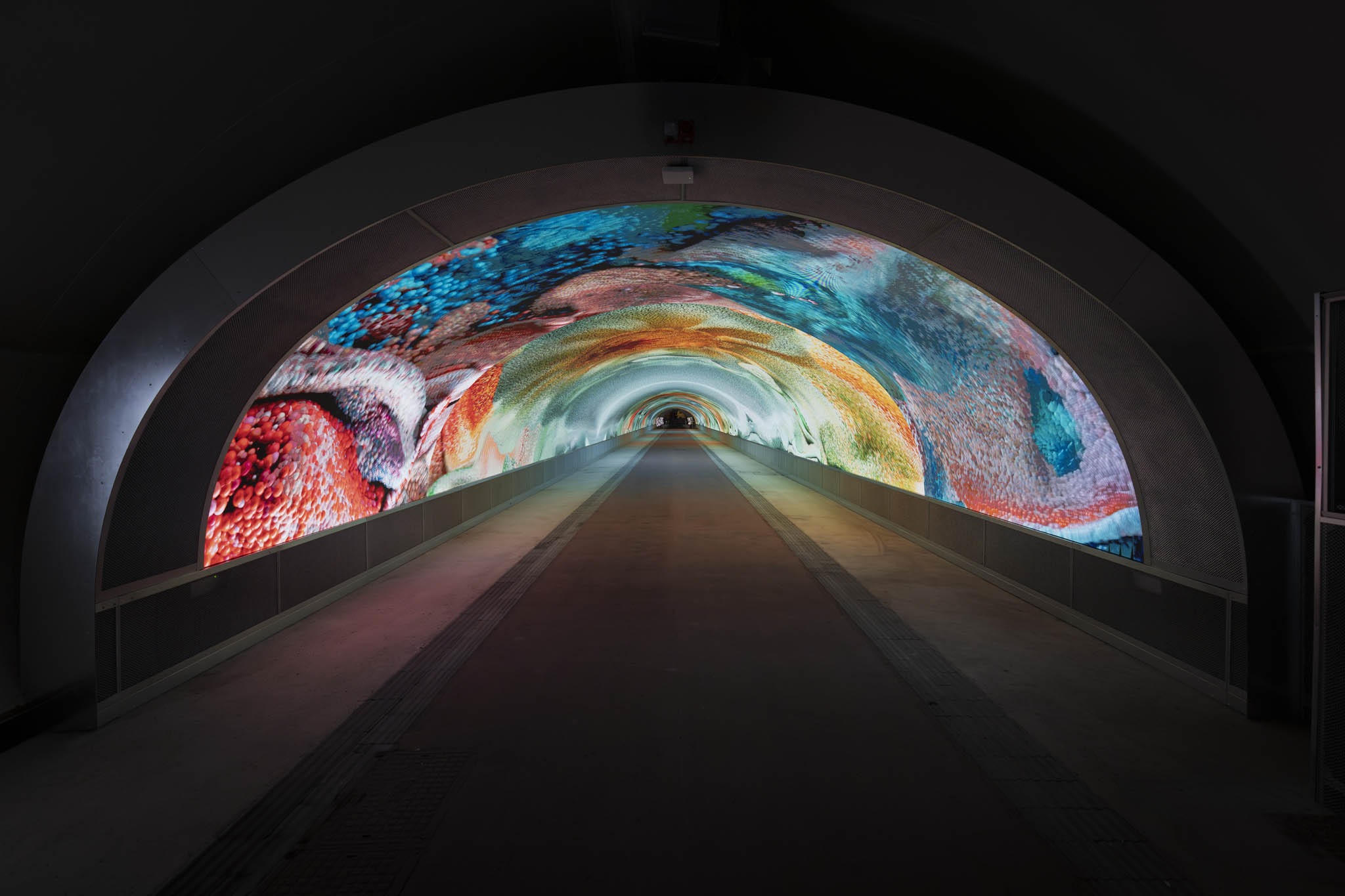 Refik Anadol Studio proposes an immersive AI Data Sculpture to be displayed inside Galleria Bombi, reimagining the newly redeveloped passage as a cognitive and aesthetic threshold—what the philosopher Michel Serres might call a “fold in experience.” Building on the Studio’s prior experimentation with this uniquely resonant tunnel structure, the work transforms the linearity of transit into a meditative journey through the deep time of nature. In this environment, data is not static information, but a living material—raw, dynamic, and sensorial.