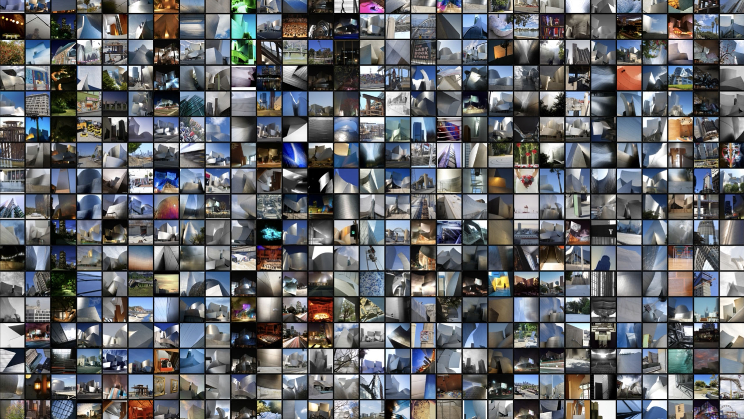 The dataset includes 32,147,692 photographs of architecture from Frank Gehry and others curated from publicly available image archives.