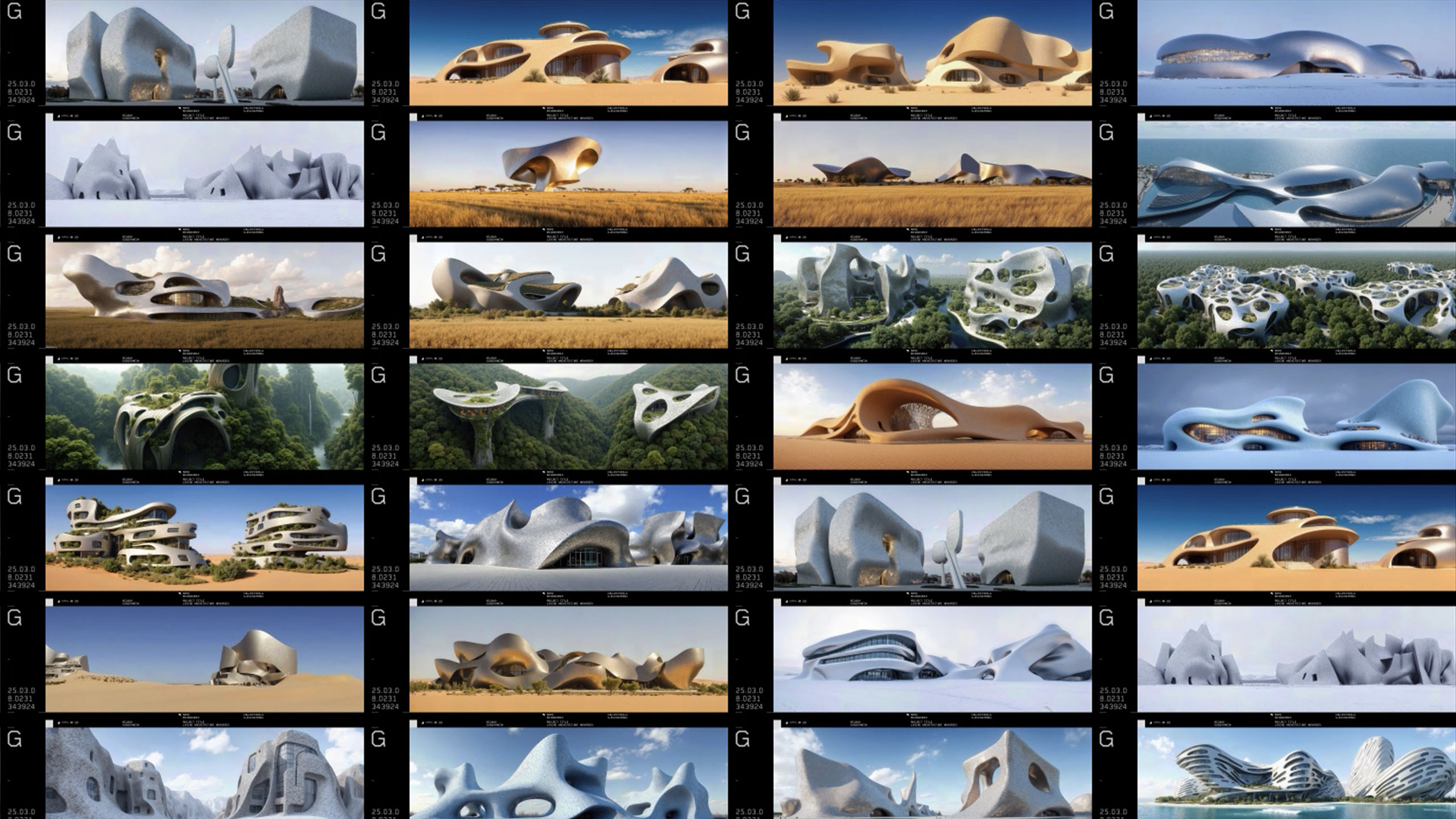 - Chapter IV — Large Architecture Model: By transforming Gehry’s forms, the AI generates new architectural possibilities that push the boundaries of imagination and design.